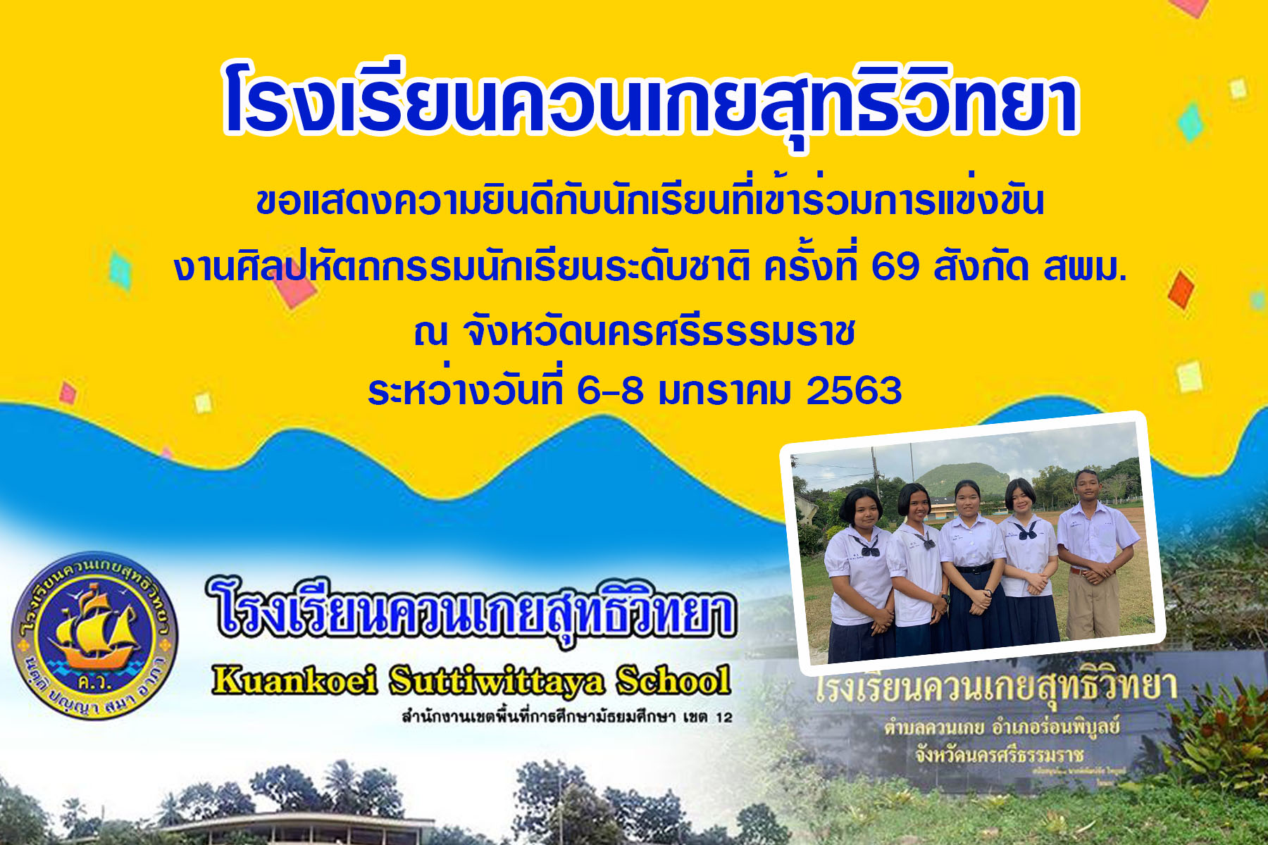 งานศิลปหัตถกรรมนักเรียนระดับชาติ ครั้งที่ 69 สังกัด สพม. ณ จังหวัดนครศรีธรรมราช ระหว่างวันที่ 6-8 มกราคม 2563