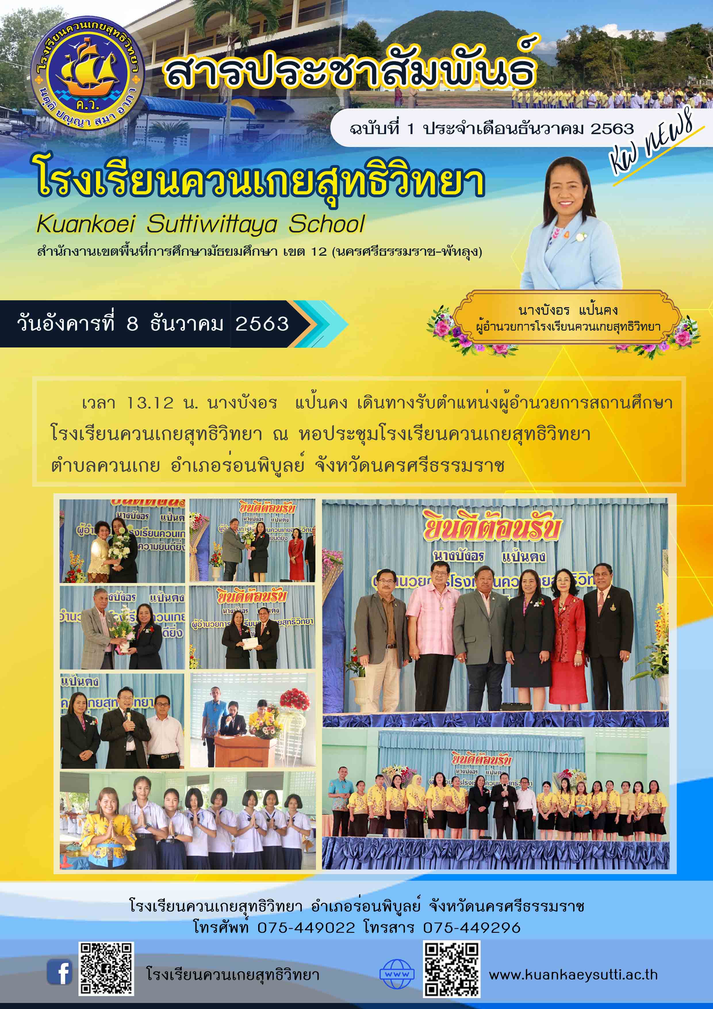 สารประชาสัมพันธ์โรงเรียนควนเกยสุทธิวิทยา ฉบับที่ 1 ประจำเดือนธันวาคม 2563