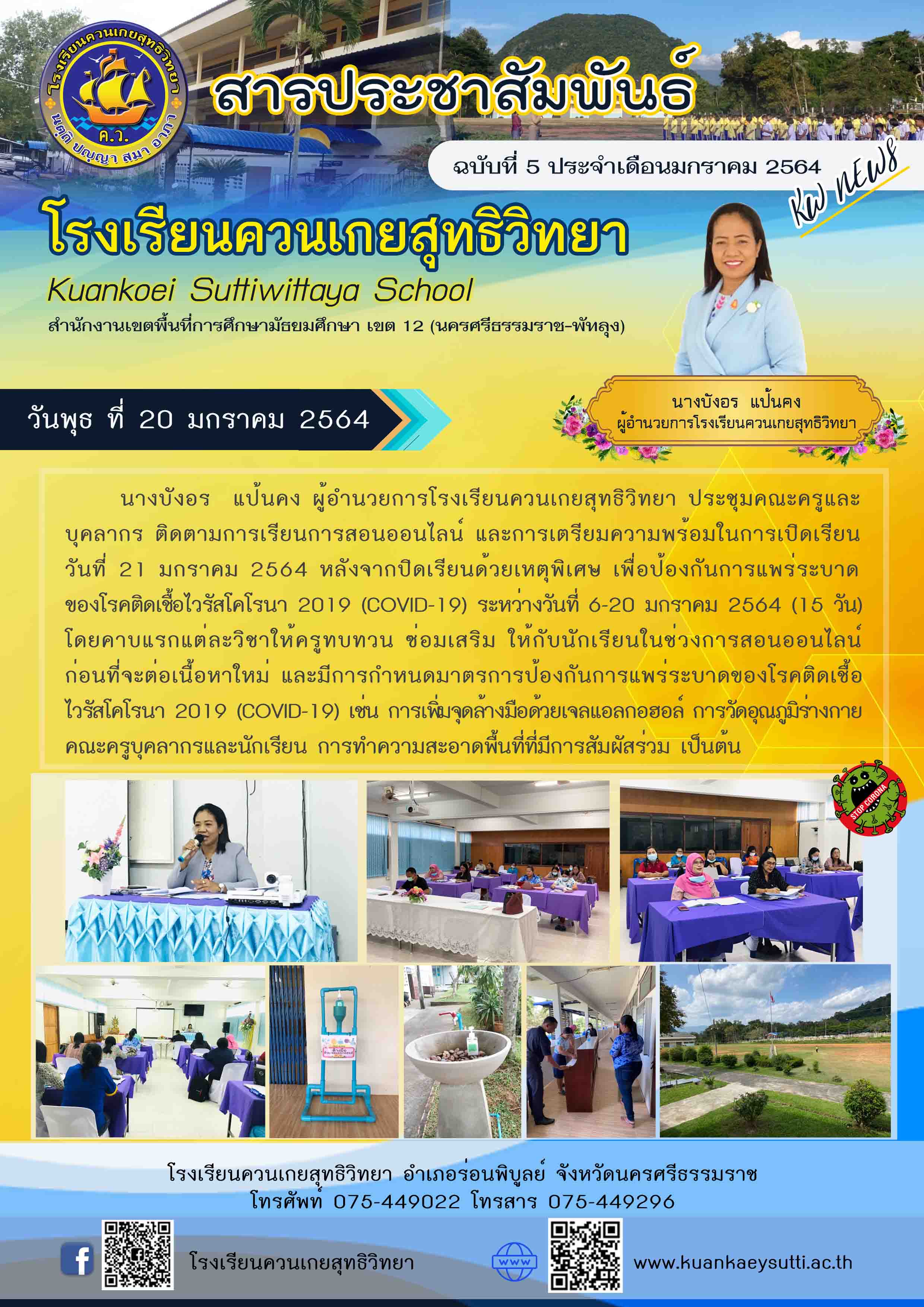 สารประชาสัมพันธ์โรงเรียนควนเกยสุทธิวิทยา ฉบับที่ 5 ประจำเดือนมกราคม 2564
