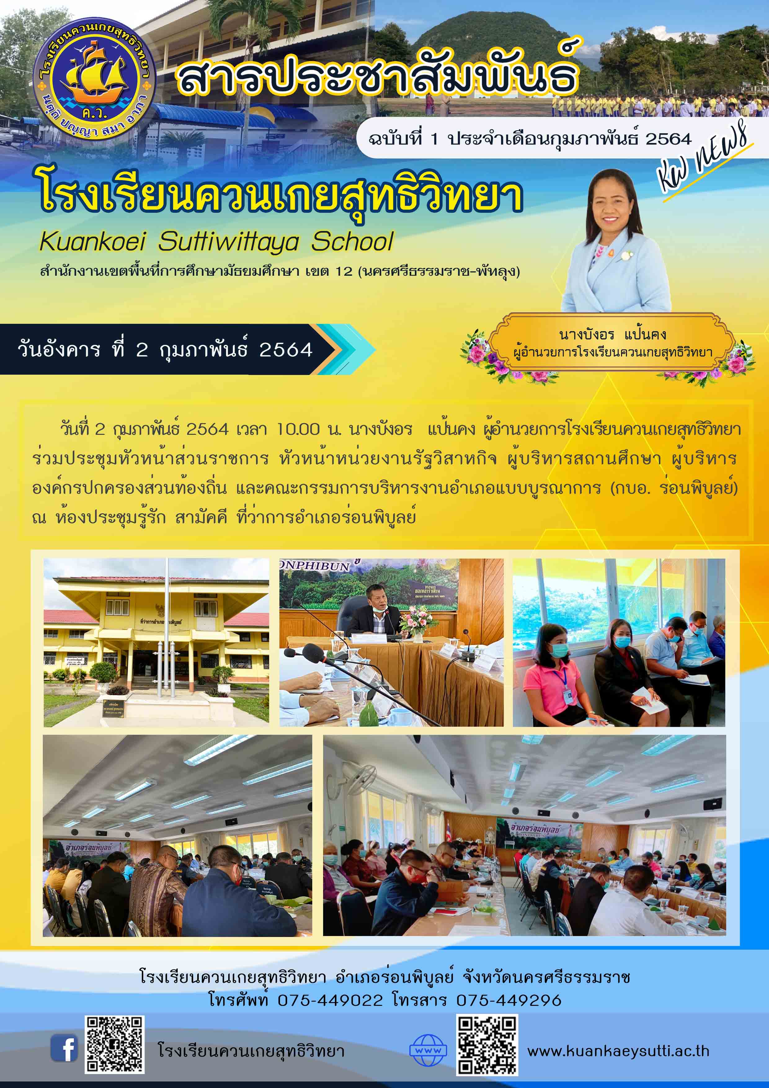 สารประชาสัมพันธ์โรงเรียนควนเกยสุทธิวิทยา ฉบับที่ 1 ประจำเดือนกุมภาพันธ์ 2564
