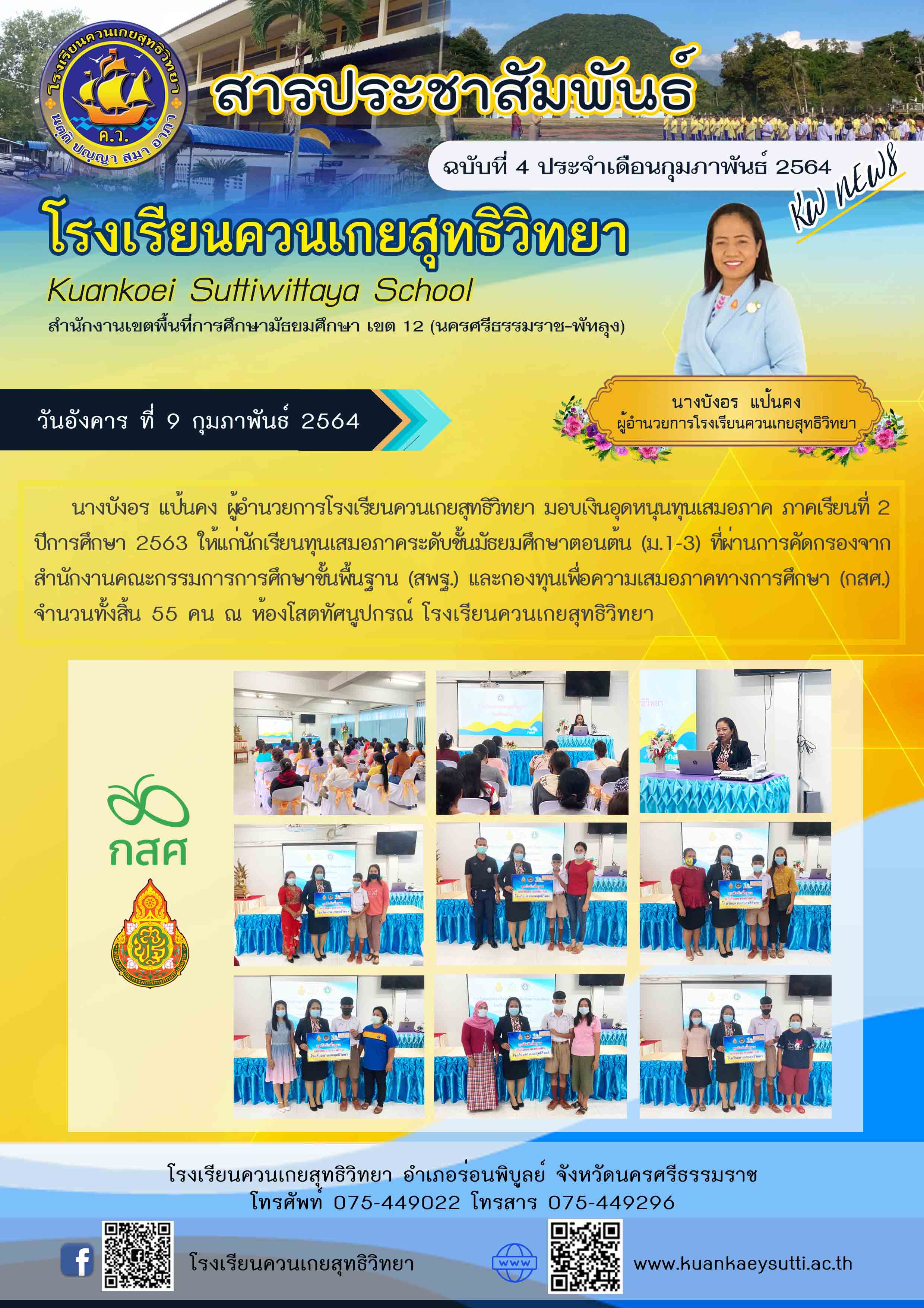 สารประชาสัมพันธ์โรงเรียนควนเกยสุทธิวิทยา ฉบับที่ 4 ประจำเดือนกุมภาพันธ์ 2564