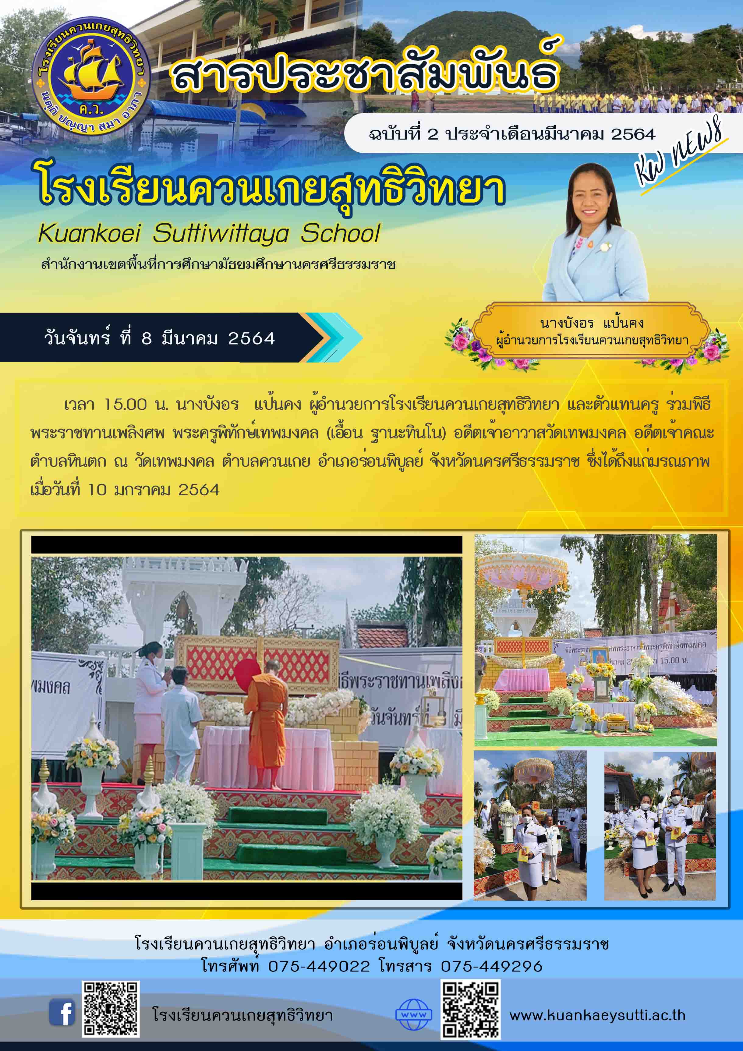 สารประชาสัมพันธ์โรงเรียนควนเกยสุทธิวิทยา ฉบับที่ 2 ประจำเดือนมีนาคม 2564