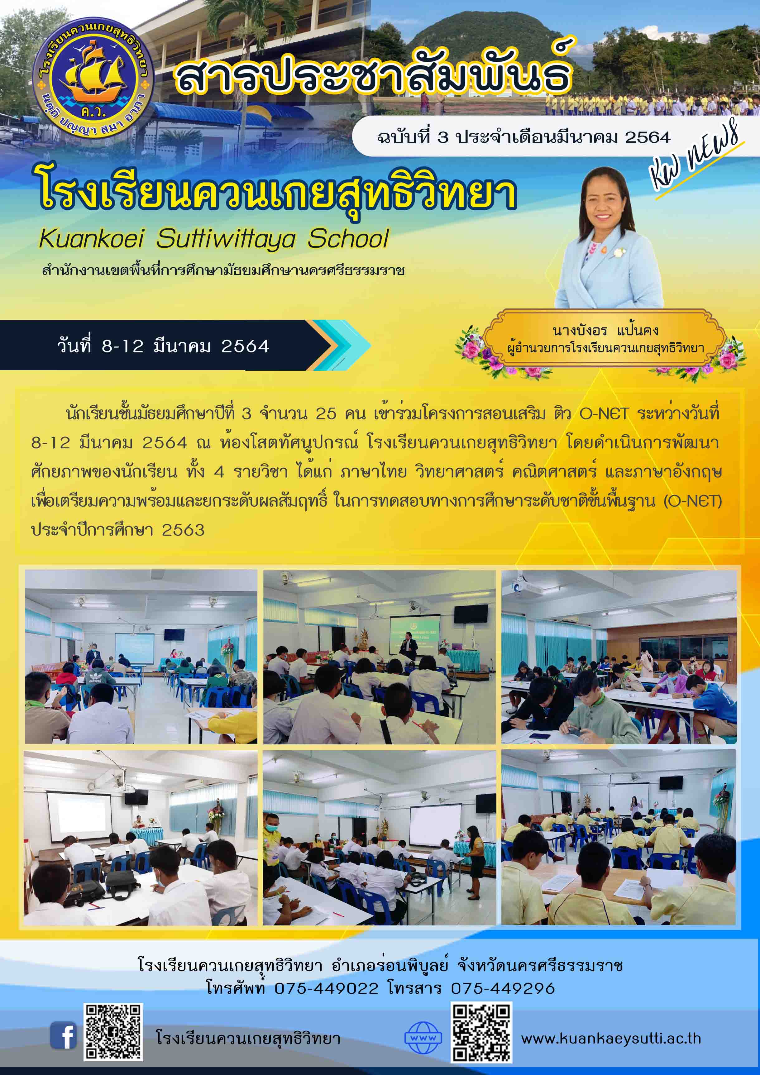 สารประชาสัมพันธ์โรงเรียนควนเกยสุทธิวิทยา ฉบับที่ 3 ประจำเดือนมีนาคม 2564