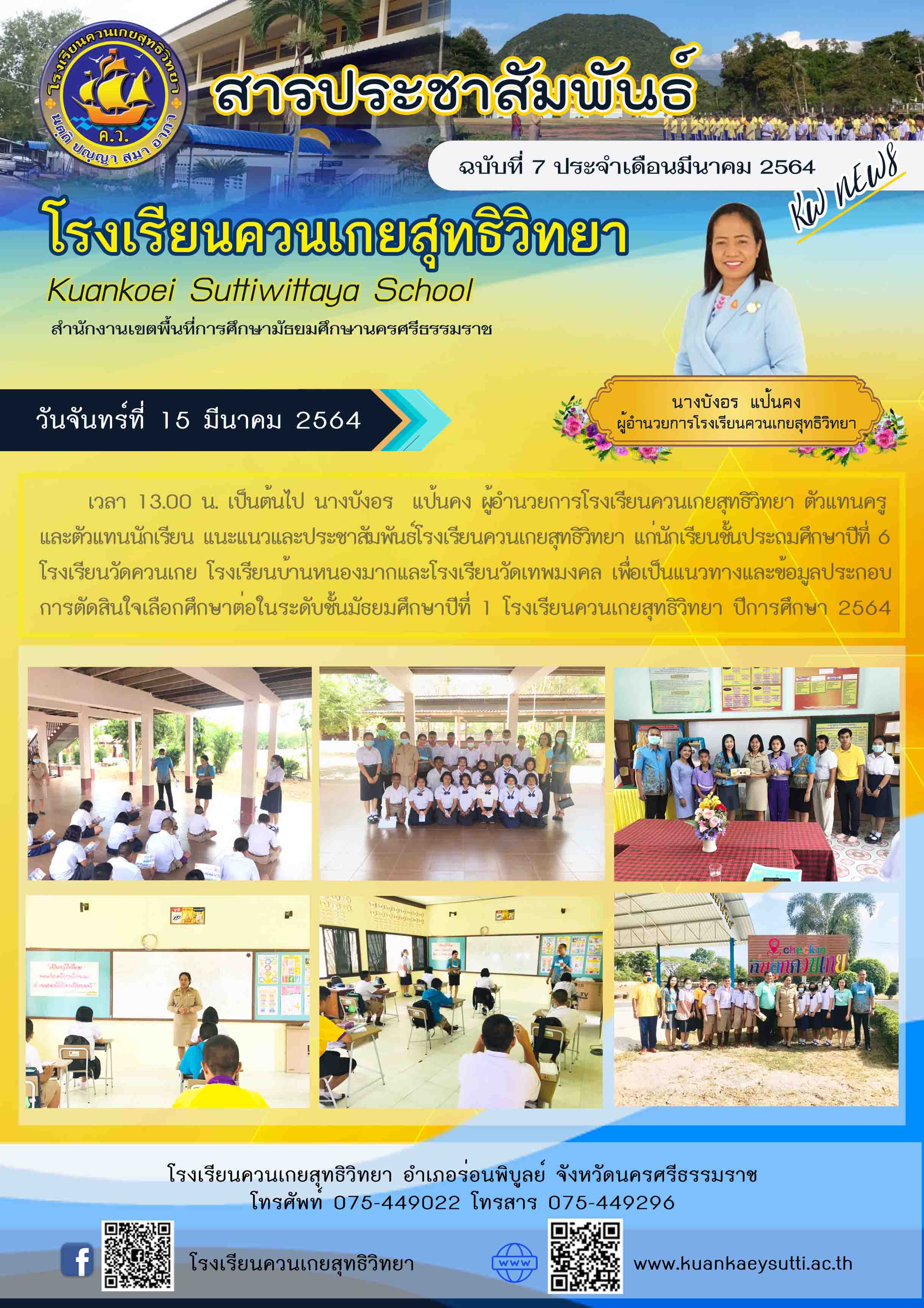 สารประชาสัมพันธ์โรงเรียนควนเกยสุทธิวิทยา ฉบับที่ 7 ประจำเดือนมีนาคม 2564
