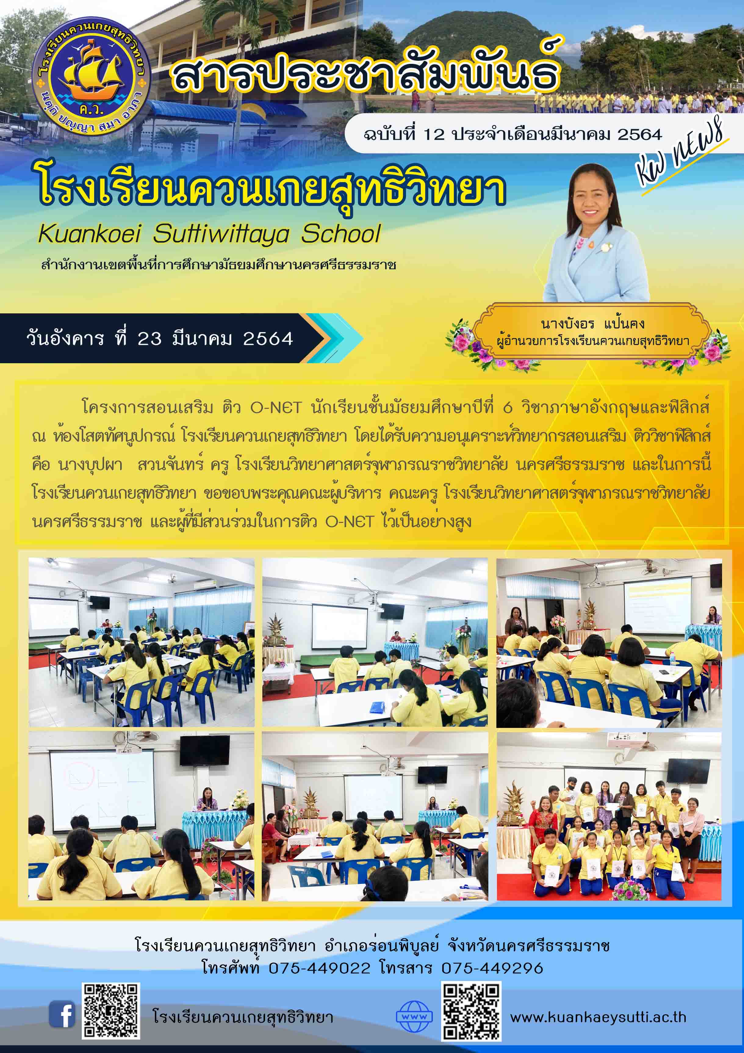 สารประชาสัมพันธ์โรงเรียนควนเกยสุทธิวิทยา ฉบับที่ 12 ประจำเดือนมีนาคม 2564