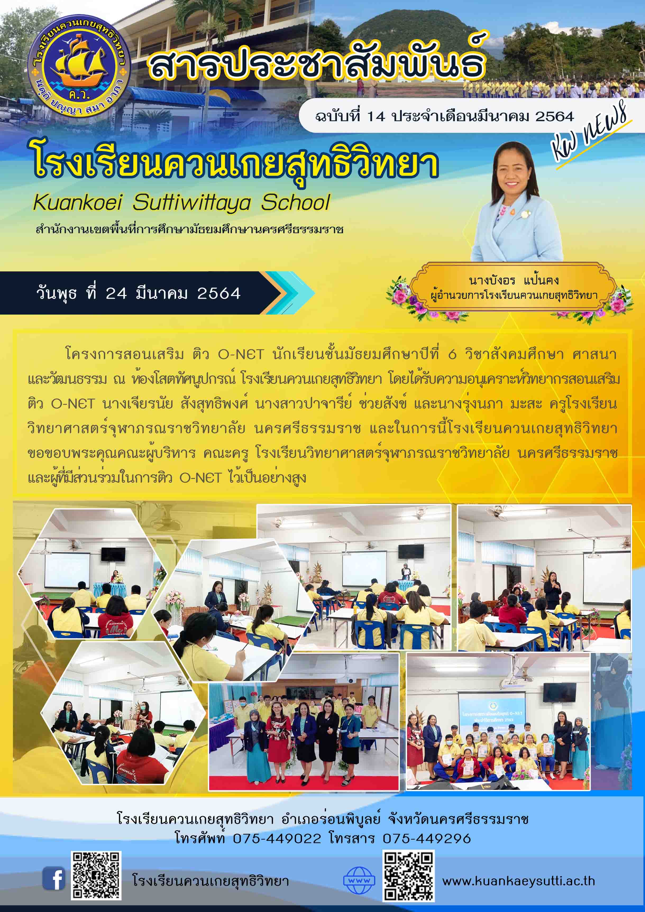 สารประชาสัมพันธ์โรงเรียนควนเกยสุทธิวิทยา ฉบับที่ 14 ประจำเดือนมีนาคม 2564