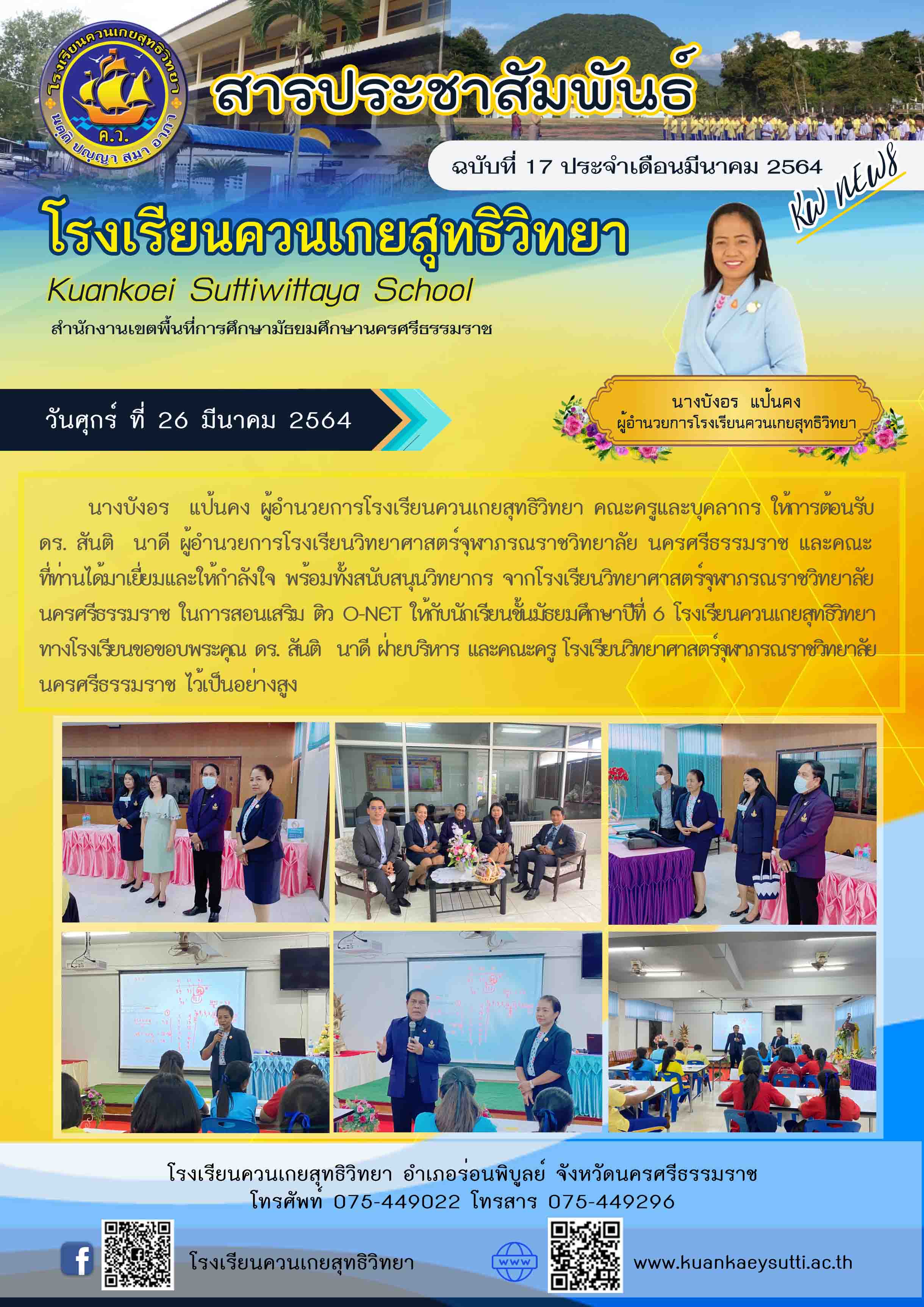 สารประชาสัมพันธ์โรงเรียนควนเกยสุทธิวิทยา ฉบับที่ 17 ประจำเดือนมีนาคม 2564