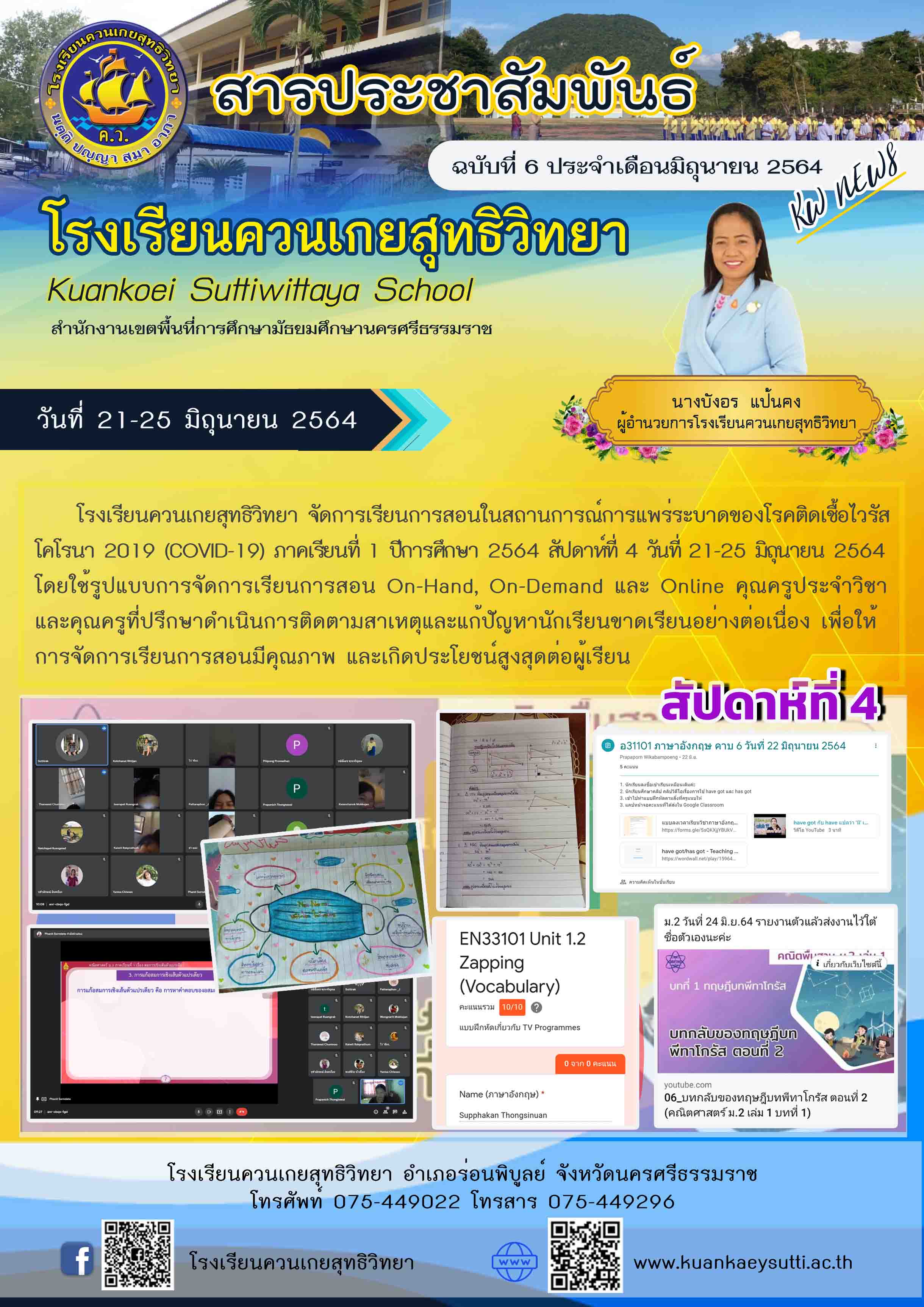 สารประชาสัมพันธ์โรงเรียนควนเกยสุทธิวิทยา ฉบับที่ 6 ประจำเดือนมิถุนายน 2564