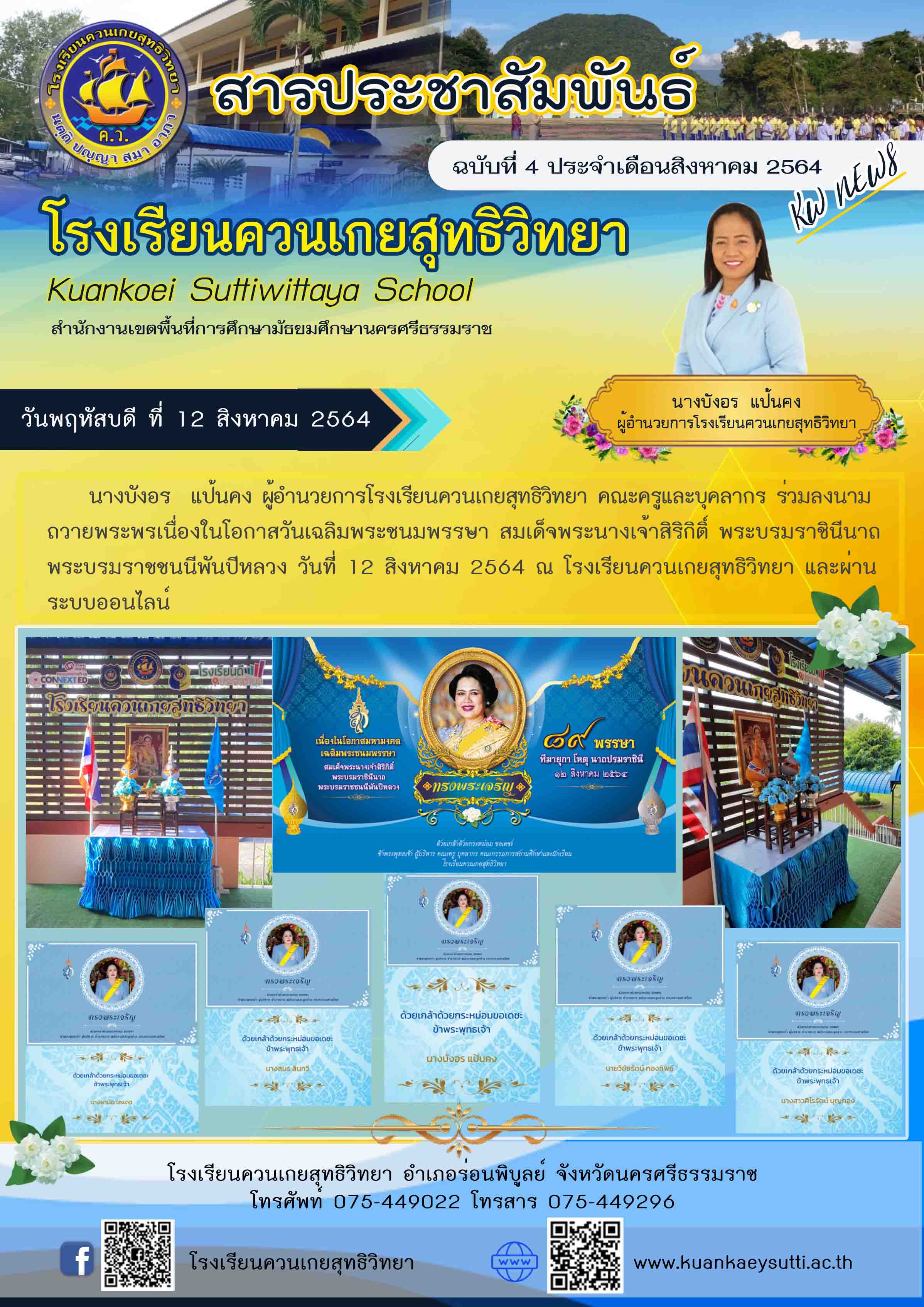 สารประชาสัมพันธ์โรงเรียนควนเกยสุทธิวิทยา ฉบับที่ 4 ประจำเดือนสิงหาคม 2564
