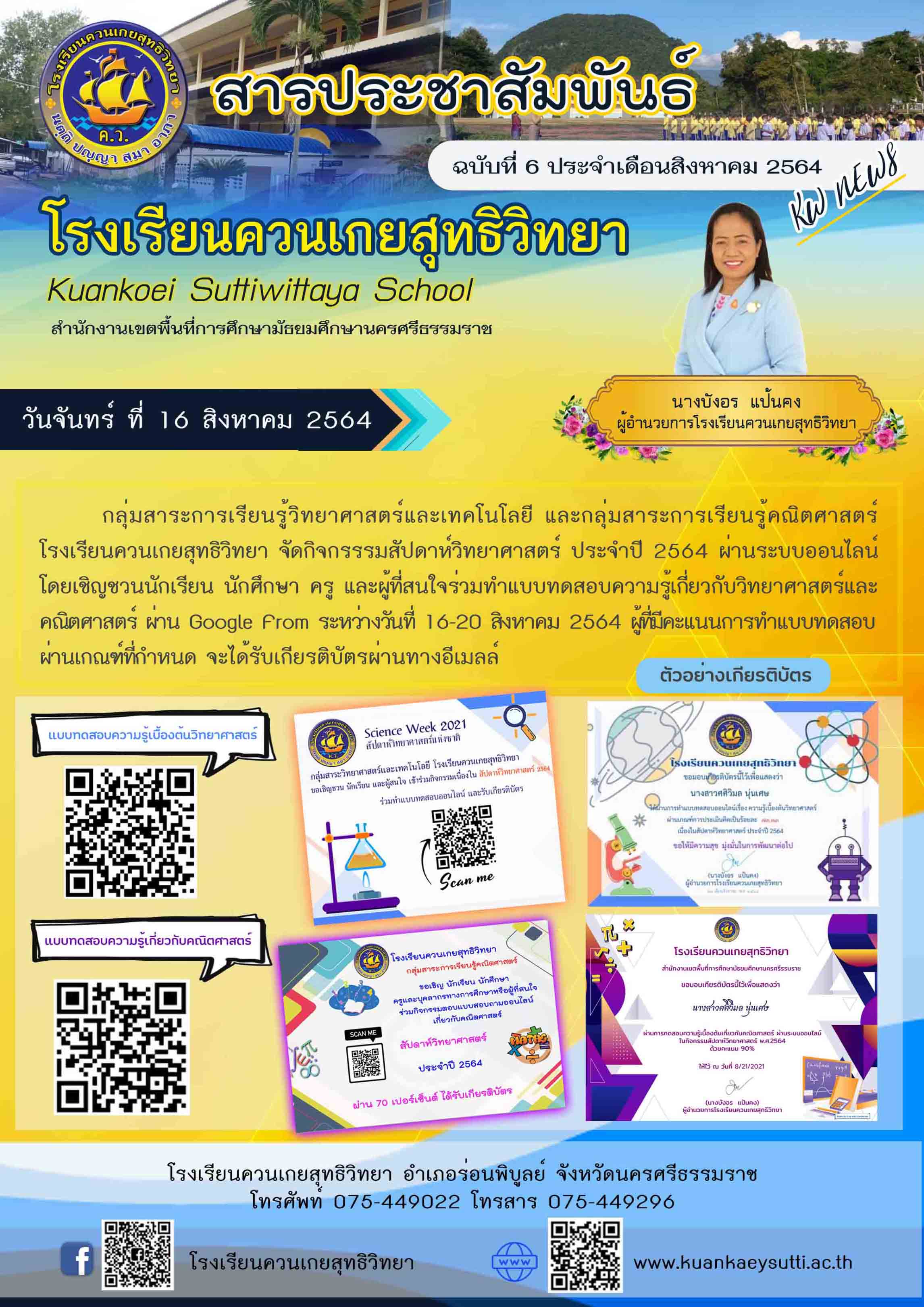 สารประชาสัมพันธ์โรงเรียนควนเกยสุทธิวิทยา ฉบับที่ 6 ประจำเดือนสิงหาคม 2564