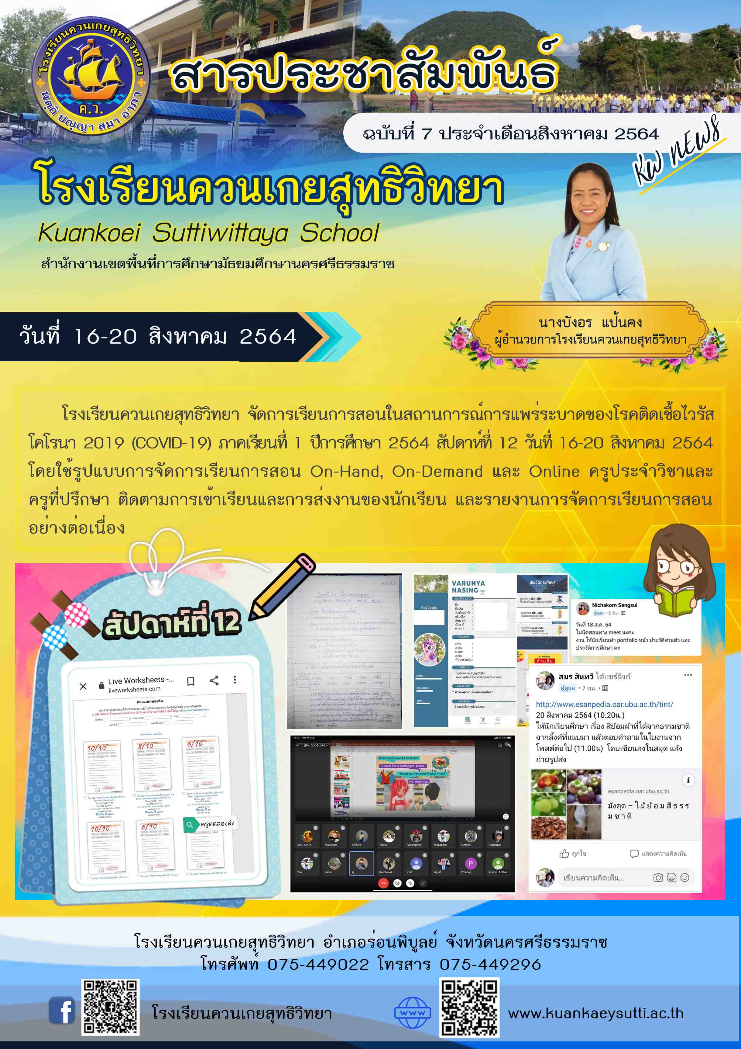 สารประชาสัมพันธ์โรงเรียนควนเกยสุทธิวิทยา ฉบับที่ 7 ประจำเดือนสิงหาคม 2564