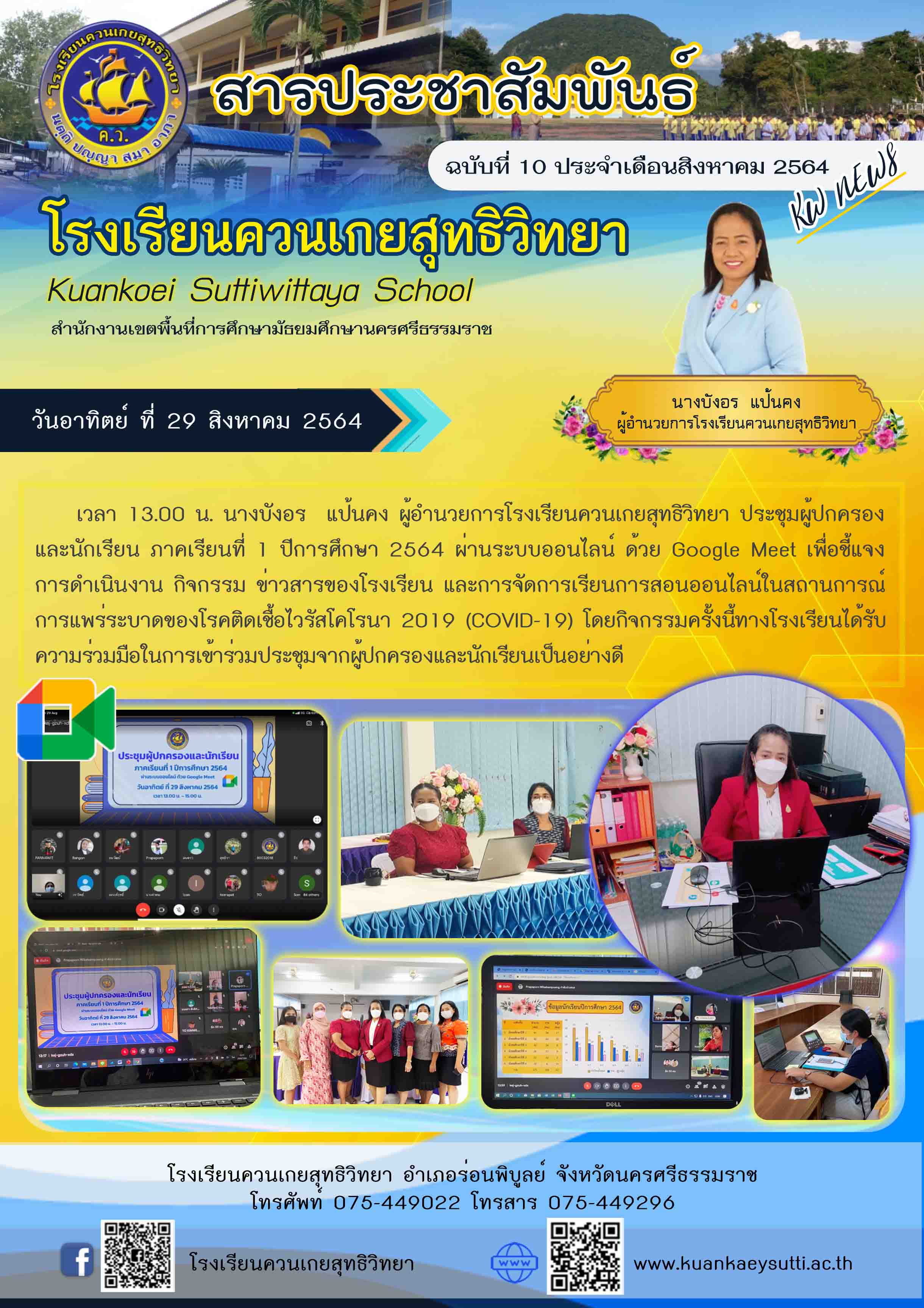 สารประชาสัมพันธ์โรงเรียนควนเกยสุทธิวิทยา ฉบับที่ 10 ประจำเดือนสิงหาคม 2564