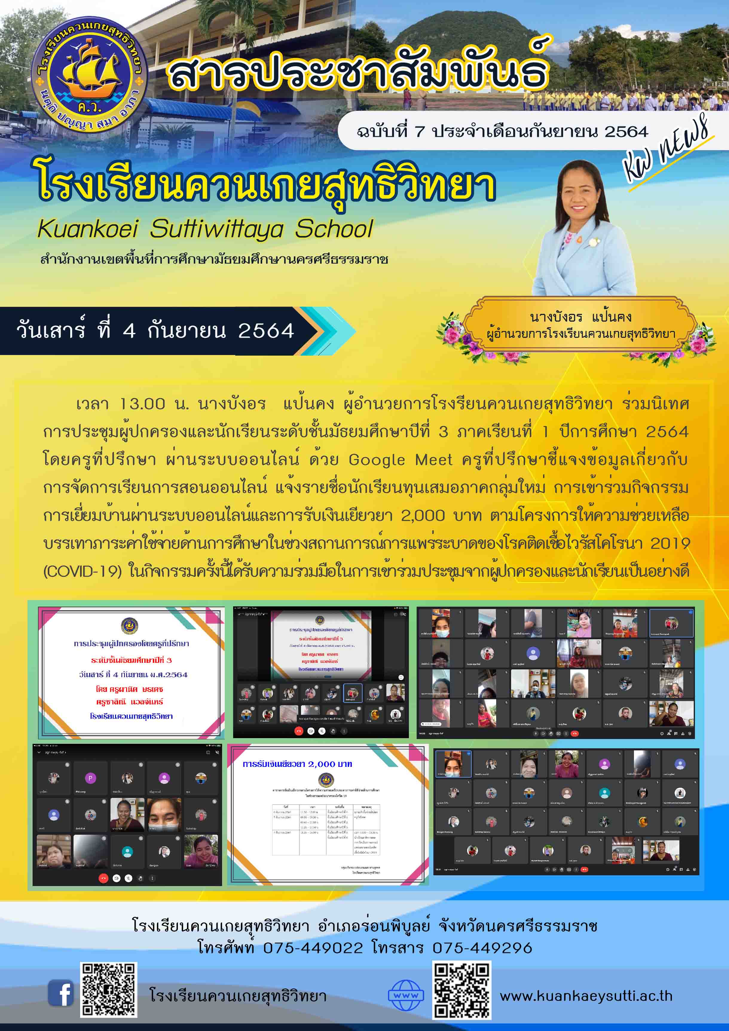 สารประชาสัมพันธ์โรงเรียนควนเกยสุทธิวิทยา ฉบับที่ 7 ประจำเดือนกันยายน 2564