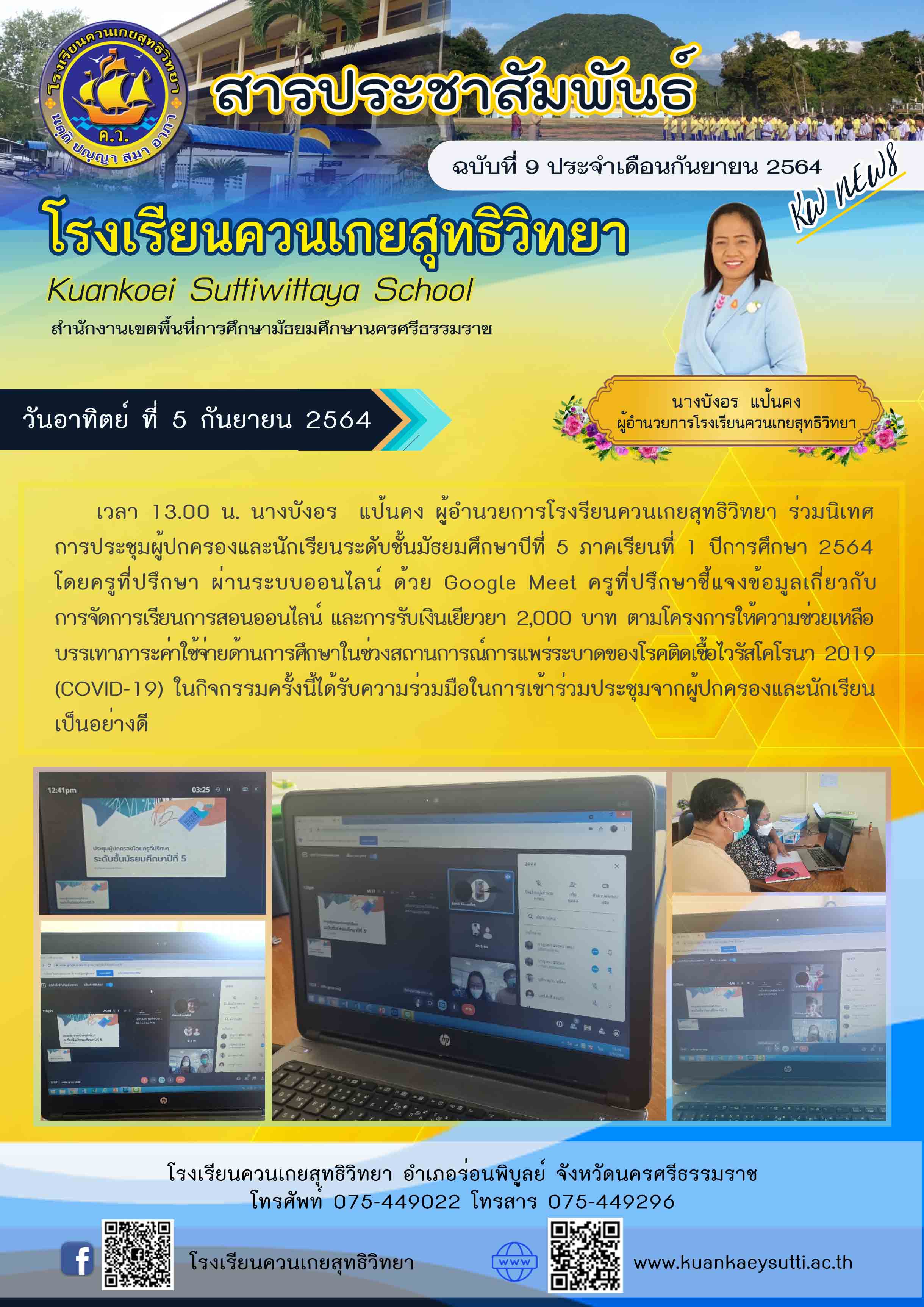 สารประชาสัมพันธ์โรงเรียนควนเกยสุทธิวิทยา ฉบับที่ 9 ประจำเดือนกันยายน 2564
