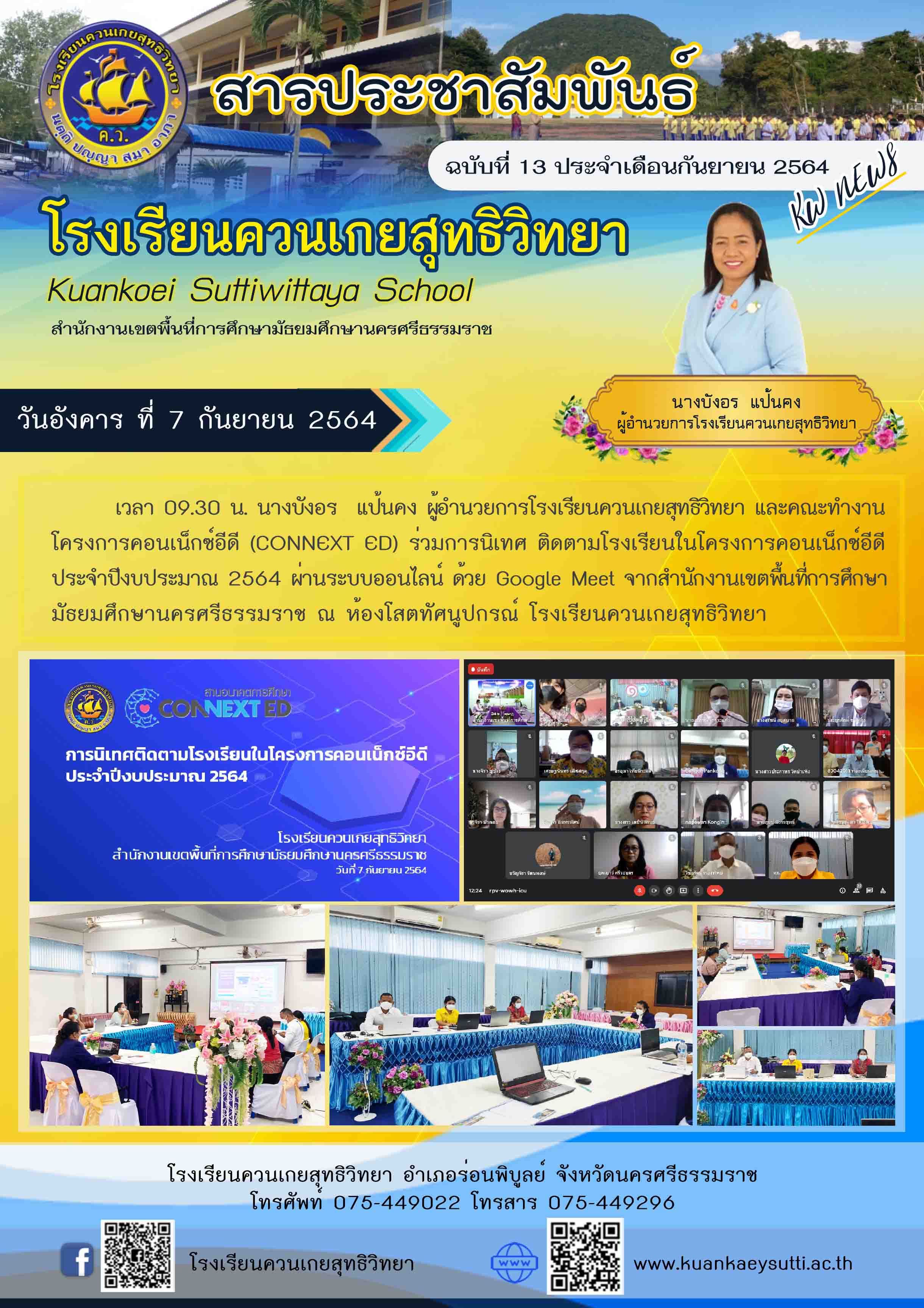 สารประชาสัมพันธ์โรงเรียนควนเกยสุทธิวิทยา ฉบับที่ 13 ประจำเดือนกันยายน 2564