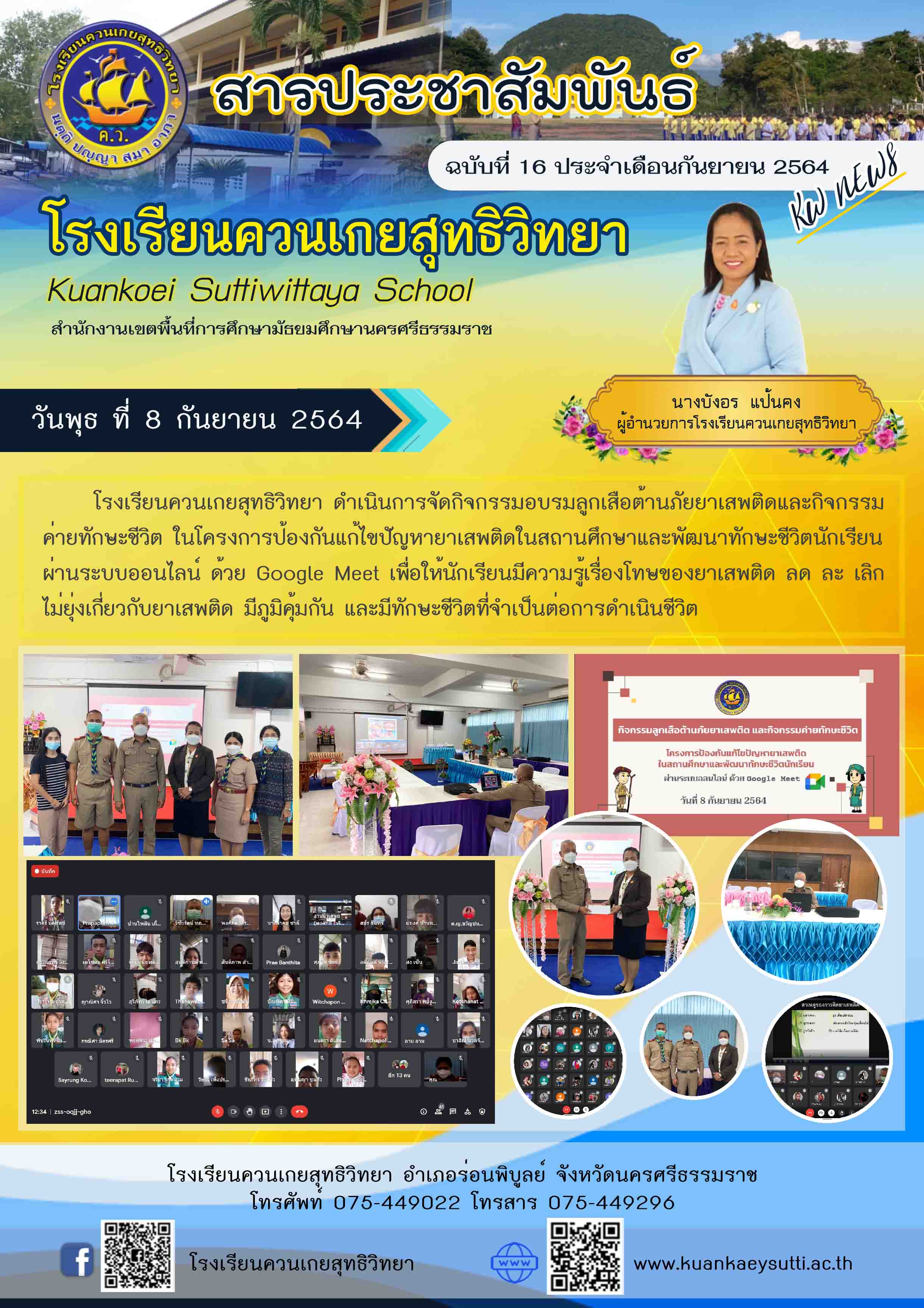 สารประชาสัมพันธ์โรงเรียนควนเกยสุทธิวิทยา ฉบับที่ 16 ประจำเดือนกันยายน 2564