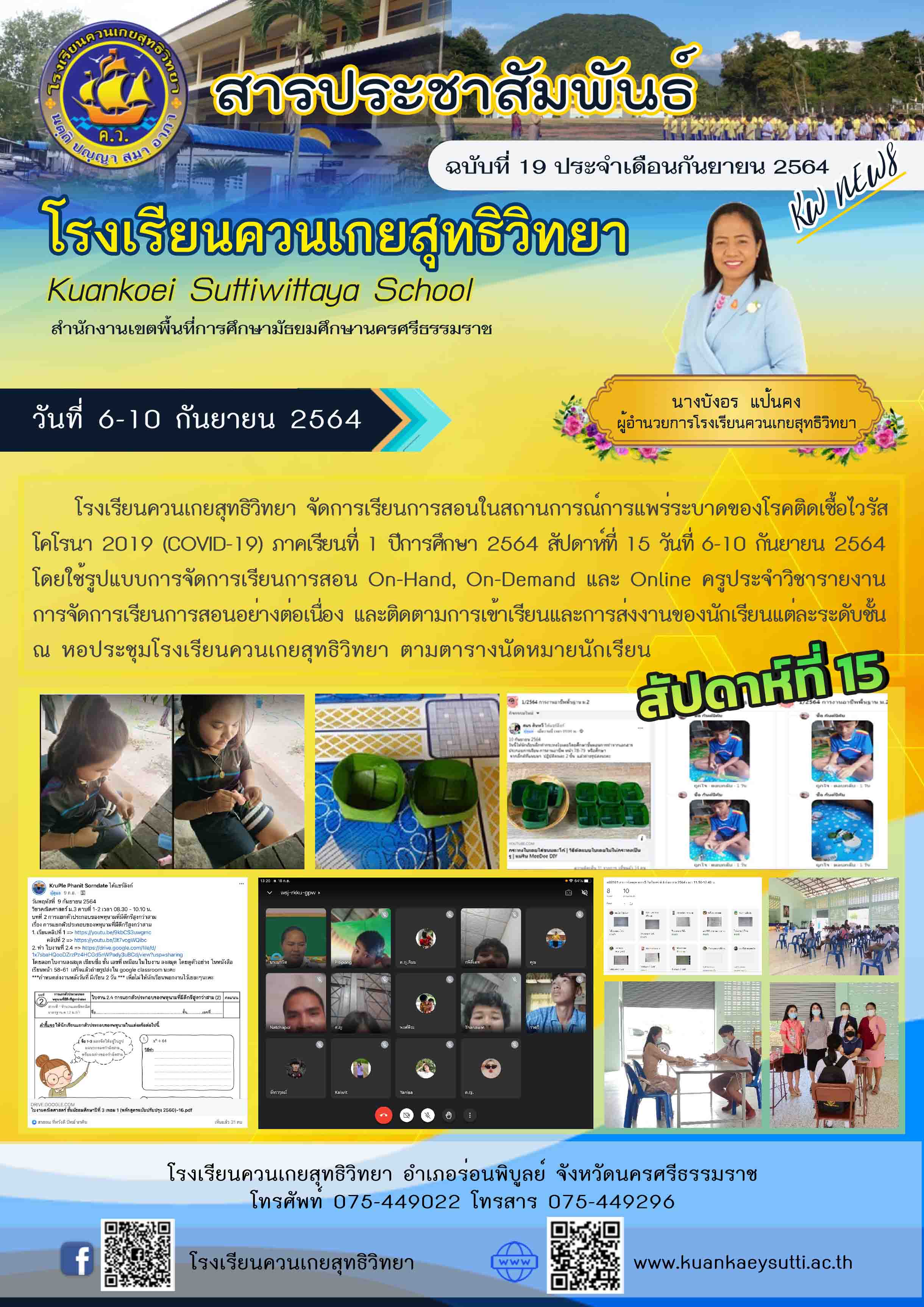 สารประชาสัมพันธ์โรงเรียนควนเกยสุทธิวิทยา ฉบับที่ 19 ประจำเดือนกันยายน 2564