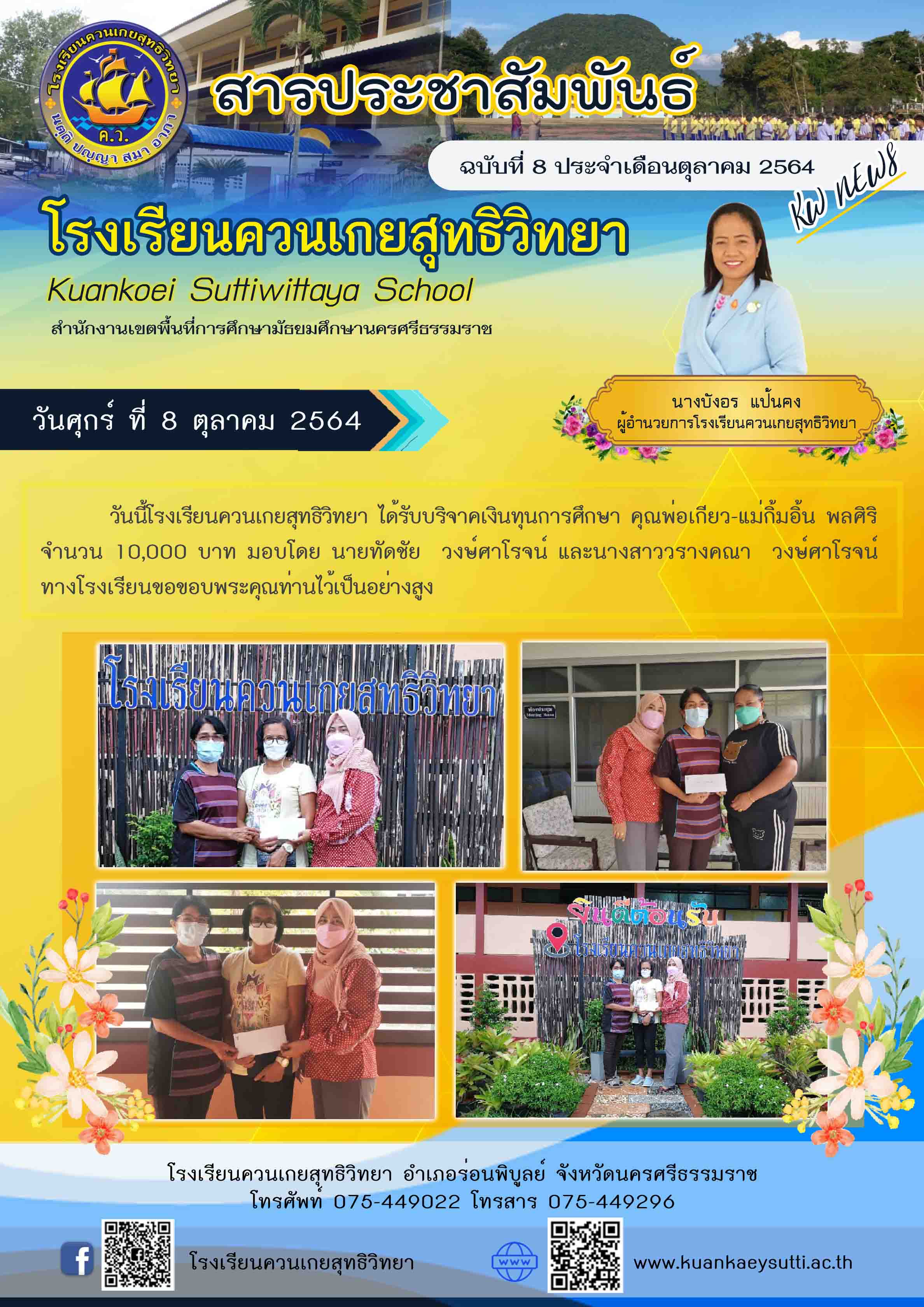 สารประชาสัมพันธ์โรงเรียนควนเกยสุทธิวิทยา ฉบับที่ 8 ประจำเดือนตุลาคม 2564