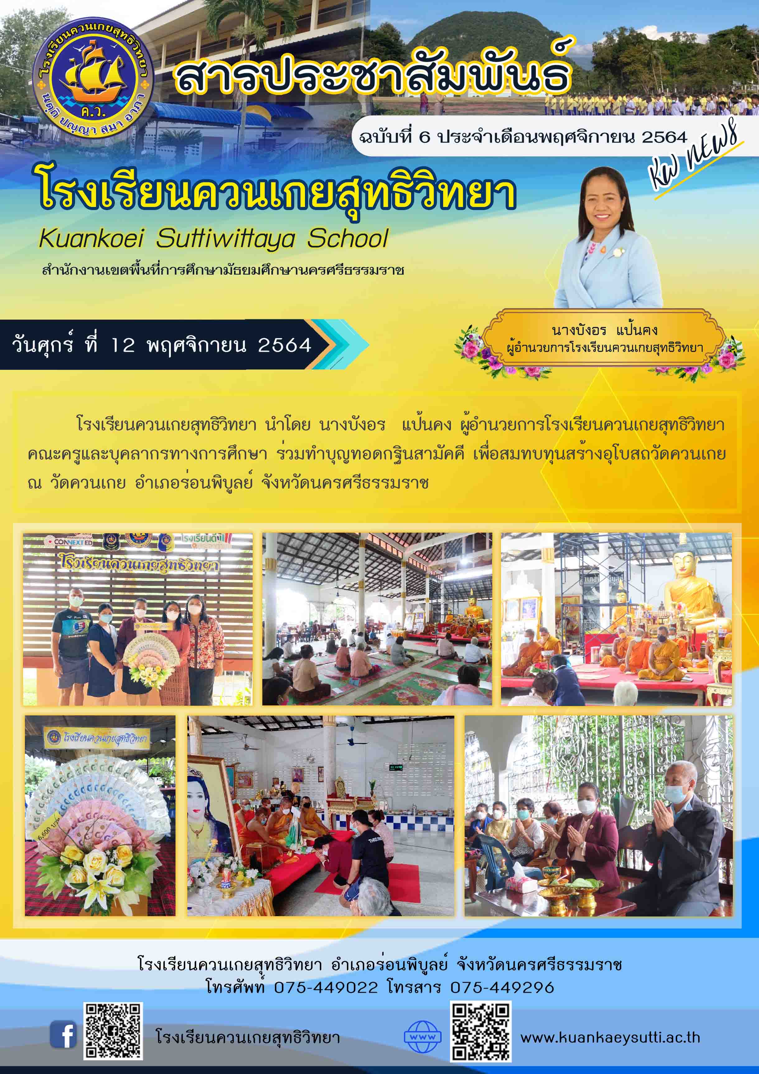 สารประชาสัมพันธ์โรงเรียนควนเกยสุทธิวิทยา ฉบับที่ 6 ประจำเดือนพฤศจิกายน 2564