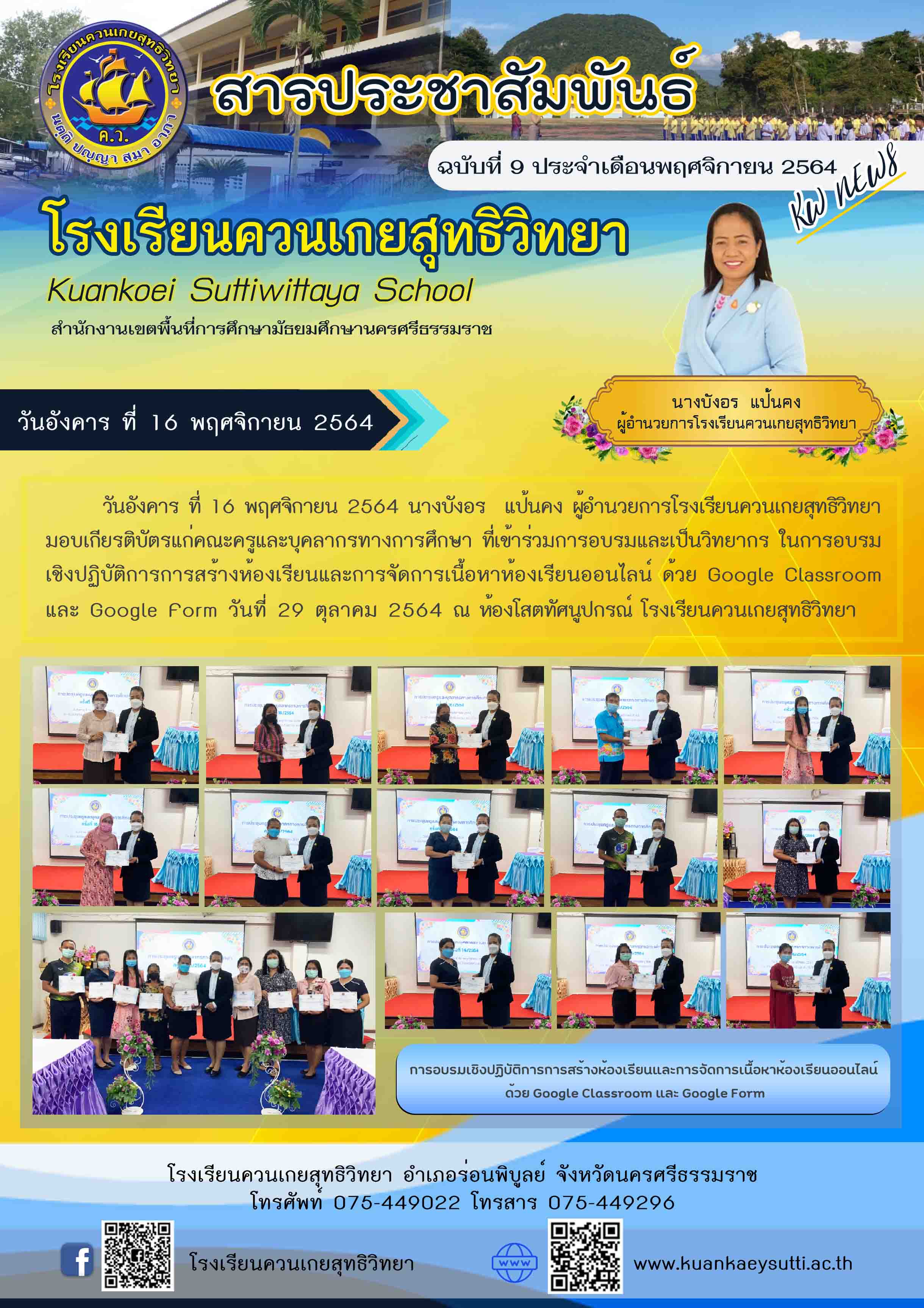 สารประชาสัมพันธ์โรงเรียนควนเกยสุทธิวิทยา ฉบับที่ 9 ประจำเดือนพฤศจิกายน 2564