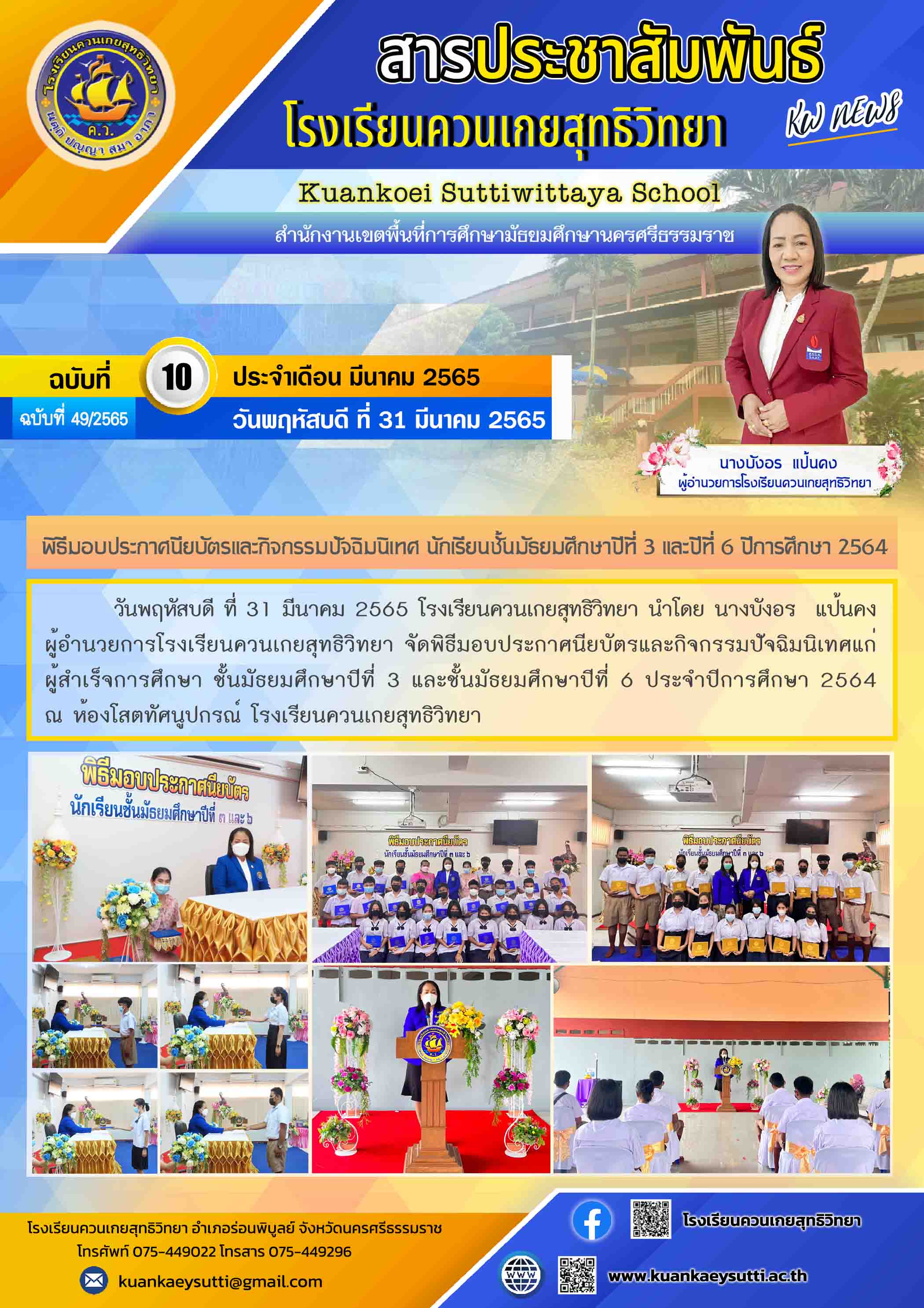 สารประชาสัมพันธ์ ฉบับที่ 49/2565 ฉบับที่ 10 ประจำเดือน มีนาคม 2565