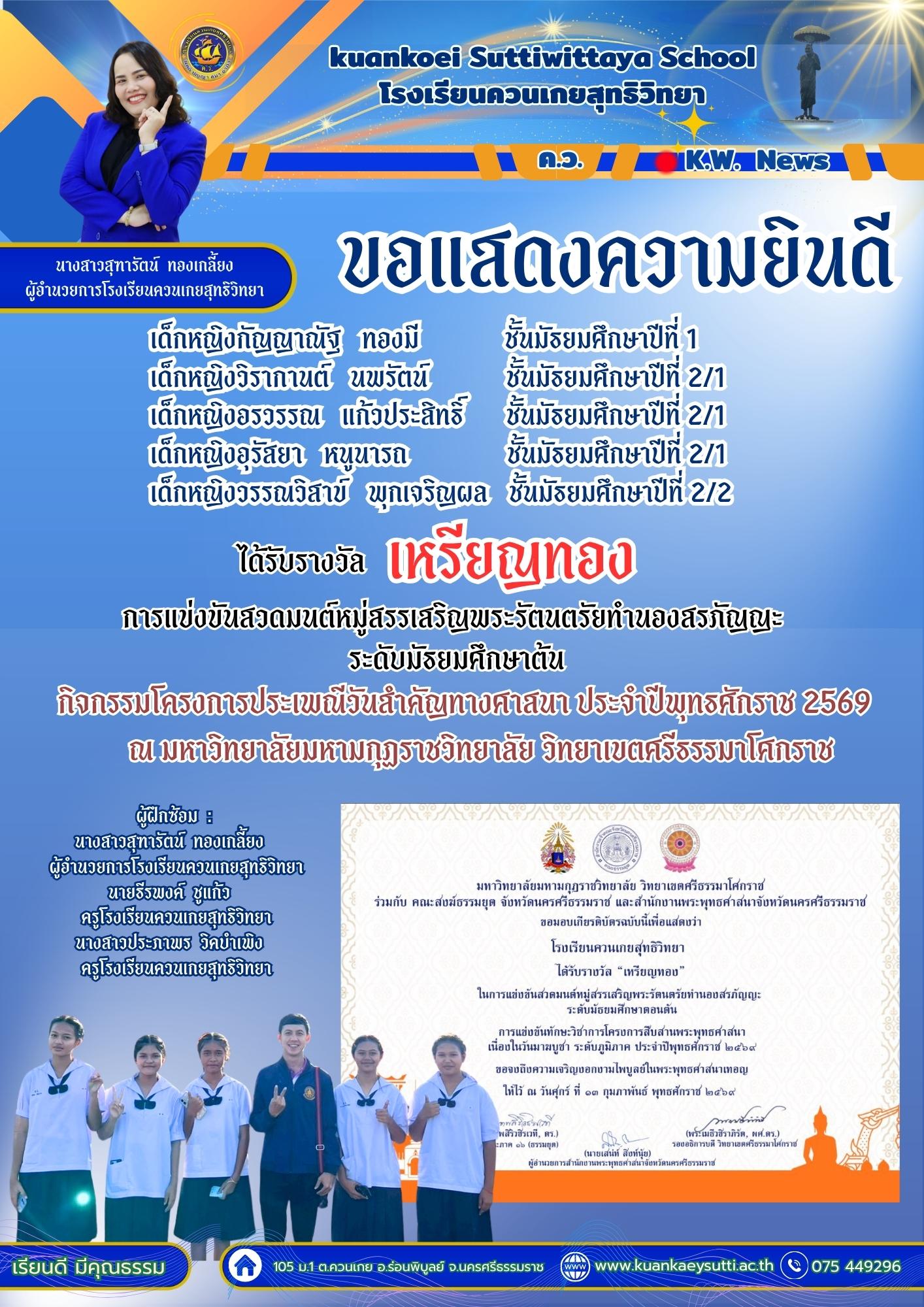 ยินดีต้อนรับเข้าสู่เว็บไซต์โรงเรียนควนเกยสุทธิวิทยา